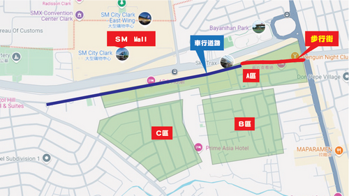這一區是內側主要道路沿線,午吧區! 不過疫情致使這裡的酒吧關了不少,不過意外的是卻蓋了幾間高級飯店;這一地段跟上一段一樣,因為有鐵網相隔,無法跨越外側大馬路到SM Mall,因而便利性不足;不過看到這些新興飯店,估計不久真會有一條道路通往SM Mall。