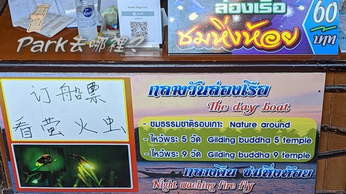 別於一般夜市的活動,在白天接近日落時刻,可以搭船遊覽運河,體驗水鄉風情,參觀附近代表性廟宇。在夜晚,可以遊船到市場周邊的樹林裡,那裏亮起無數的小光點,是由大自然生物螢火蟲所產生,彷彿像繁星一般點綴著河岸。