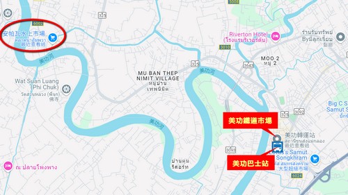 - 地點:位於曼谷西南方約80公里處的沙沒宋干府,美功河支流河畔。曼谷搭車前往約1.5小時。