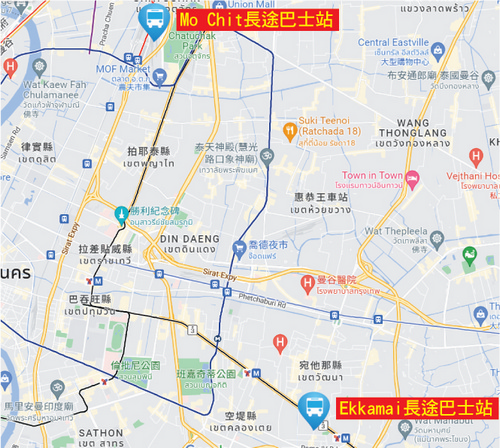 - 原因三:巴士東站Ekkamai,就位在捷運BTS(Sky Train)的Ekkamai站旁,一出捷運很快就抵達,方便又好找。而Mo chit長途巴士距離捷運還有約15-20分鐘的步行路程。