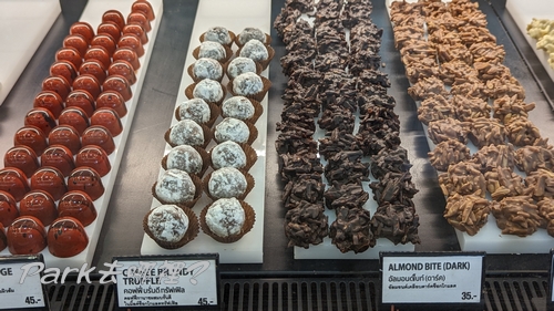 The Chocolate factory  的巧克力,甜而不膩,有著天然的可可香味,不是那種人工香料的感覺,口感不錯,不過對於我這種少吃甜點的人,感覺有點貴,一個拇指頭大小的巧克力,價格約在35-50泰銖。